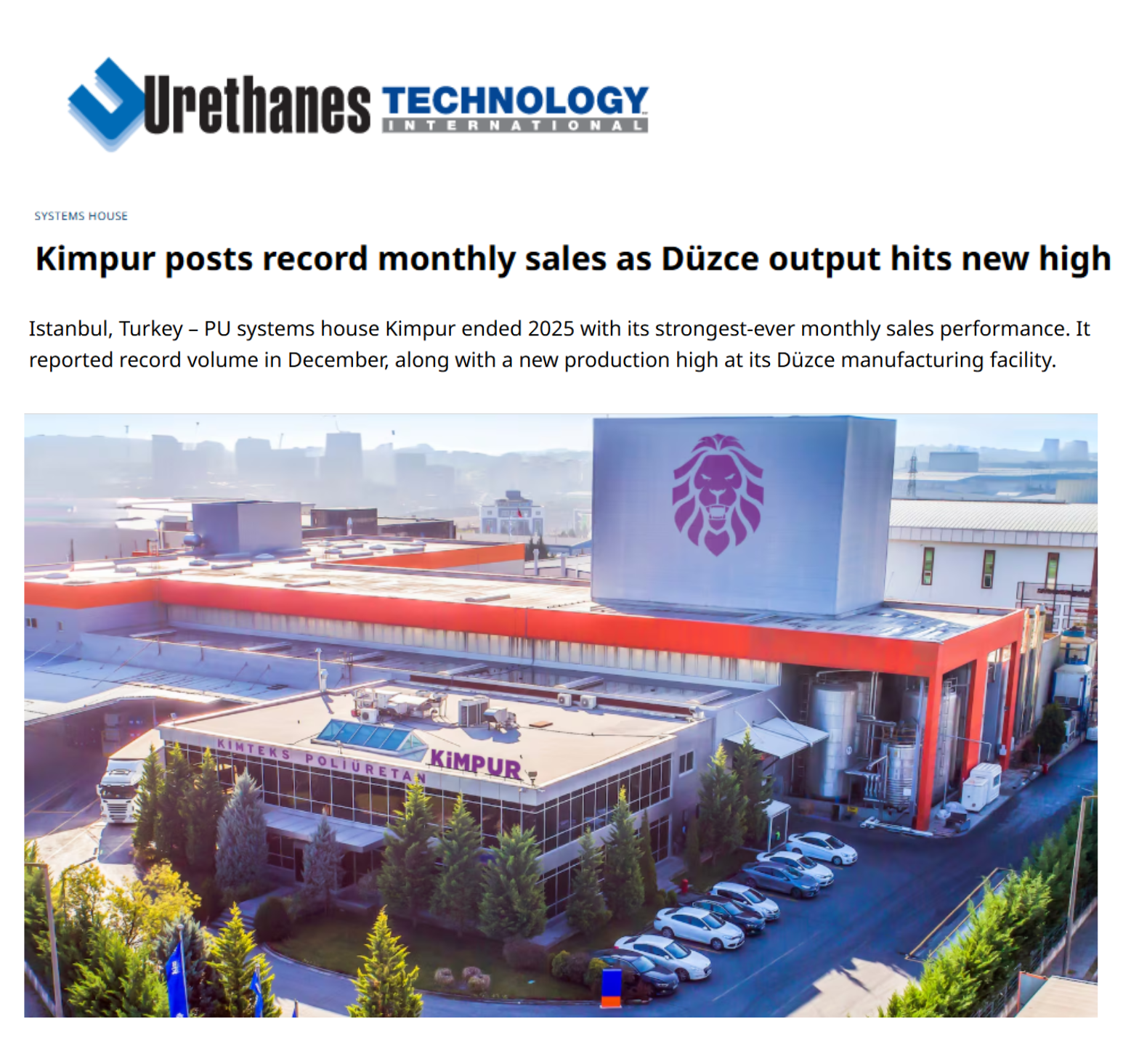 Kimpur is the polyurethane systems house with the highest production capacity and sales volume in the region. Thanks to its wide product range, robust production infrastructure, international operations network, and agile, solution-oriented approach, it is positioned as a reliable and preferred systems manufacturer in the global market, exporting to more than 60 countries on five continents.