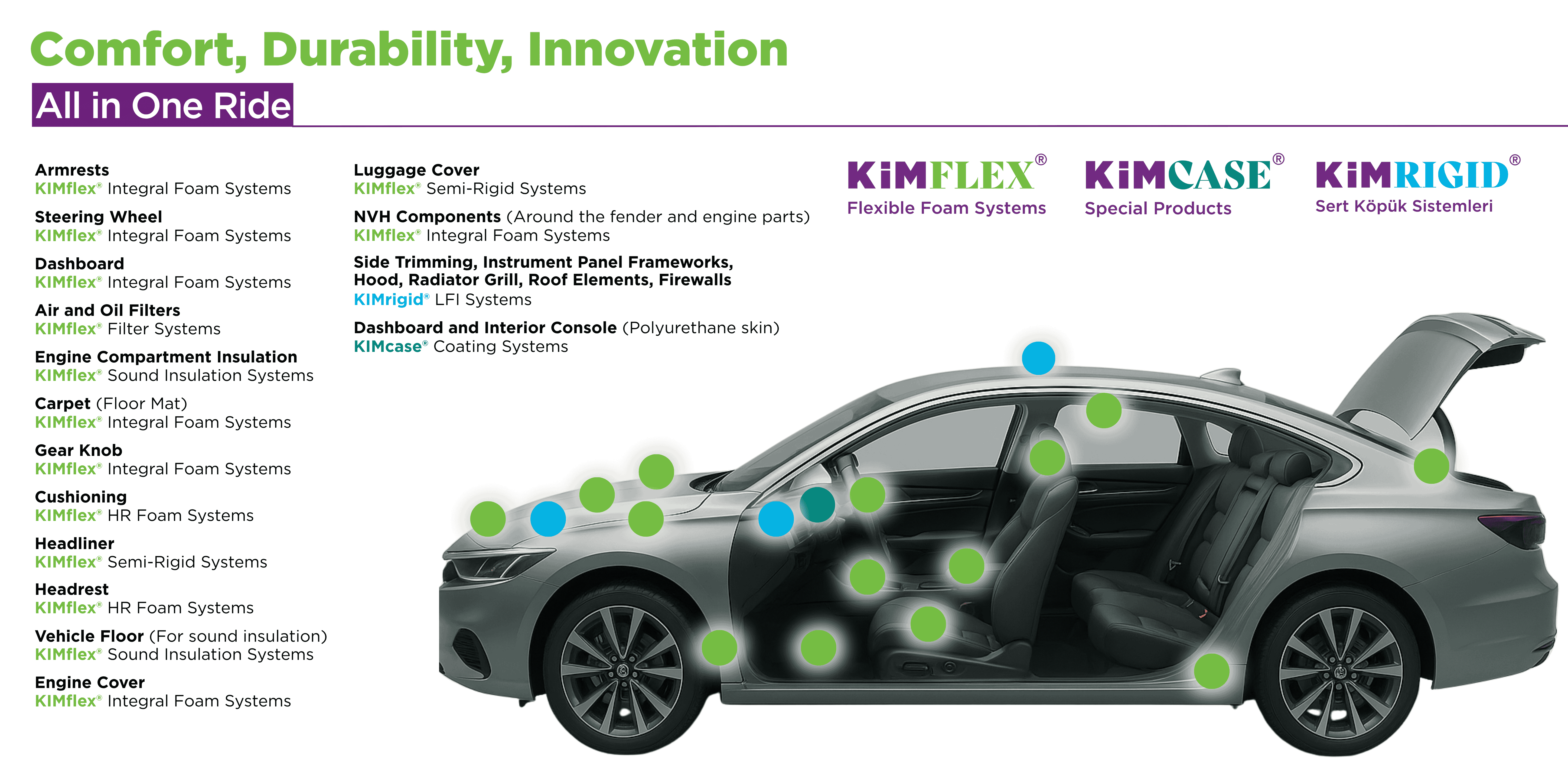 Kimpur has developed advanced polyurethane systems offering superior advantages to ensure a comfortable and safe driving experience.