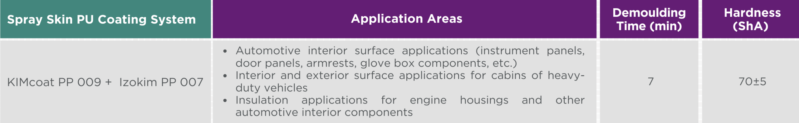 In automotive interior design, aesthetic appearance, tactile quality and long-term surface performance have become increasingly important. The KIMcoat Spray Skin Polyurethane Coating System has been developed to support these requirements in modern automotive manufacturing.