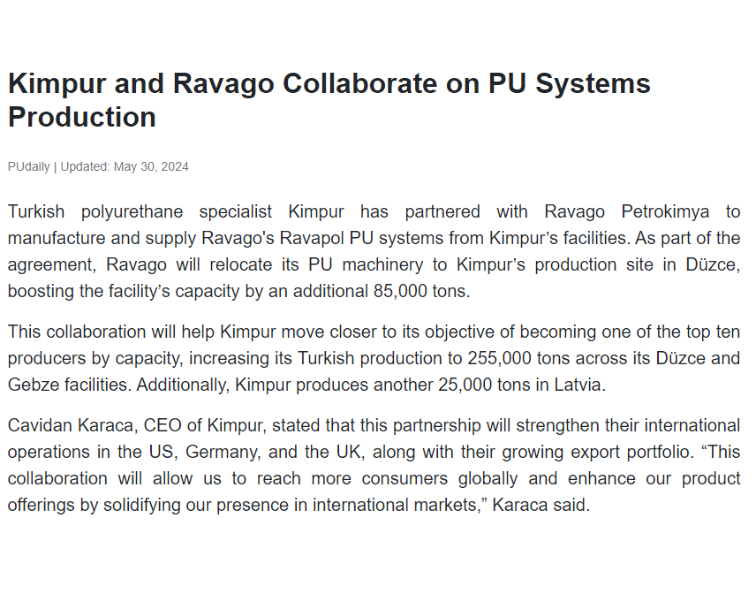 Kimpur and Ravago Collaborate on PU Systems Production – PU Daily