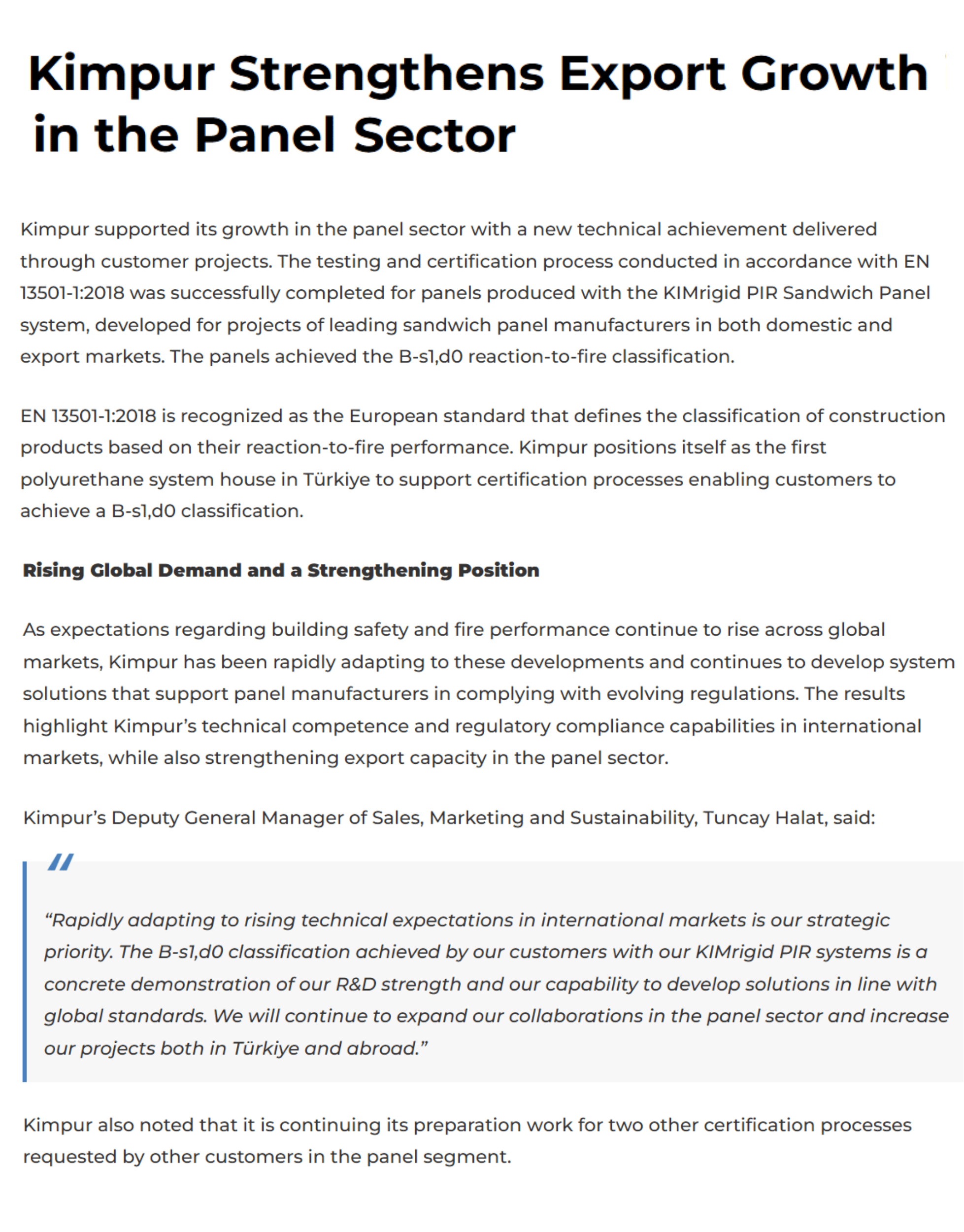 Kimpur Strengthens Export Growth in the Panel Sector – Chemex World