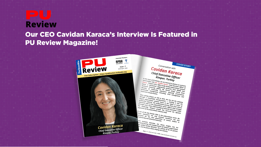 Our CEO Cavidan Karaca’s Interview – PU Review Magazine Published on: April 20, 2026 Published in: Press Releases Home › Blog › Our CEO Cavidan Karaca’s Interview – PU Review Magazine1 min read Click here to access the full interview. İlgili İçerikler Kimpur Names Bisley as ANZ Distributor to Expand Regional Reach – Urethanes Technology Press Releases Kimpur Ranks Top 3% In ESG Chemical Industry Assessment – Urethanes Technology Press Releases Kimpur posts record monthly sales as Düzce output hits new high Press Releases Kimpur’s Sustainability Approach Has Been Recognized with an Award! News Our CEO Cavidan Karaca’s Interview in the Summer 2025 Issue of Urethanes Technology Press Releases Kimpur Revs Up Automotive Competitiveness with technical certification – Urethanes Technology Press Releases Kimpur and Ravago Collaborate on PU Systems Production – PU Daily Press Releases