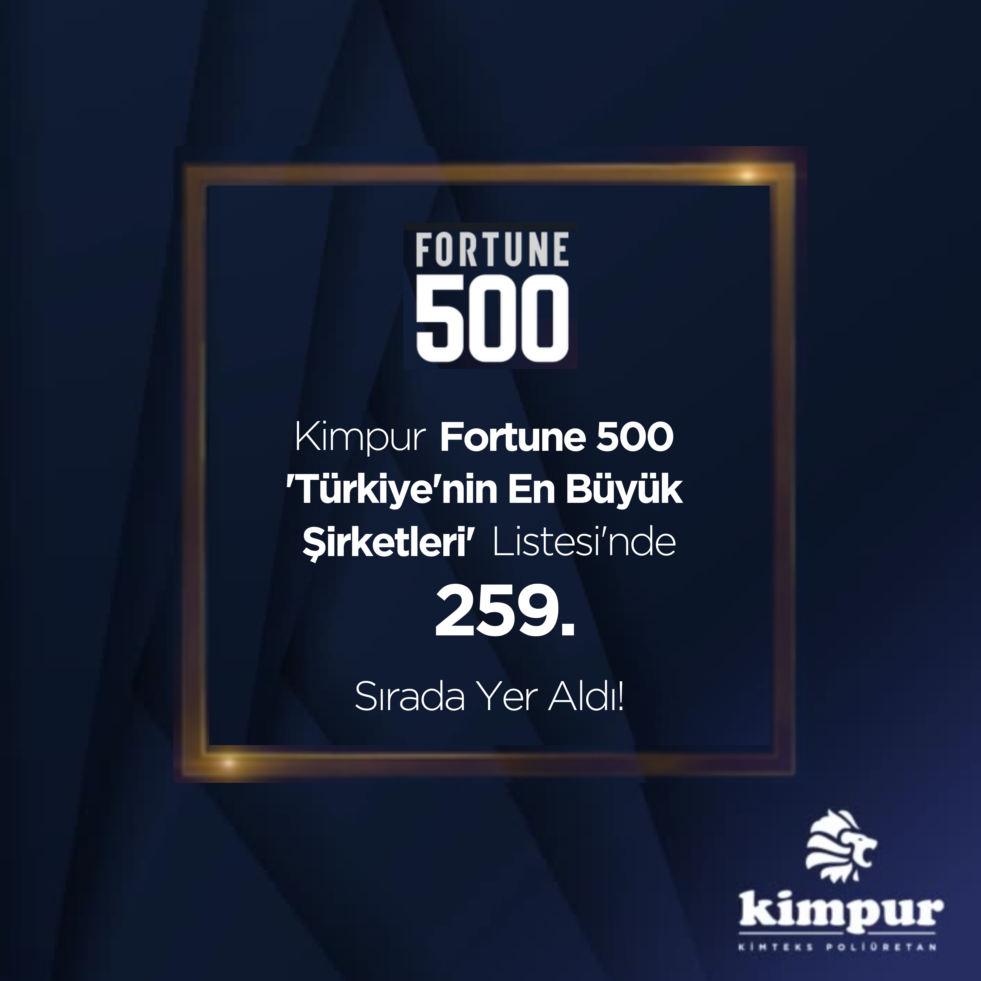 Kimpur, ‘Fortune 500 Türkiye’nin En Büyük Şirketleri’ Listesi’nde 259. Sırada Yer Aldı! Kimpur, ‘Fortune 500 Türkiye’nin En Büyük Şirketleri’ Listesi’nde 259. Sırada Yer Aldı!