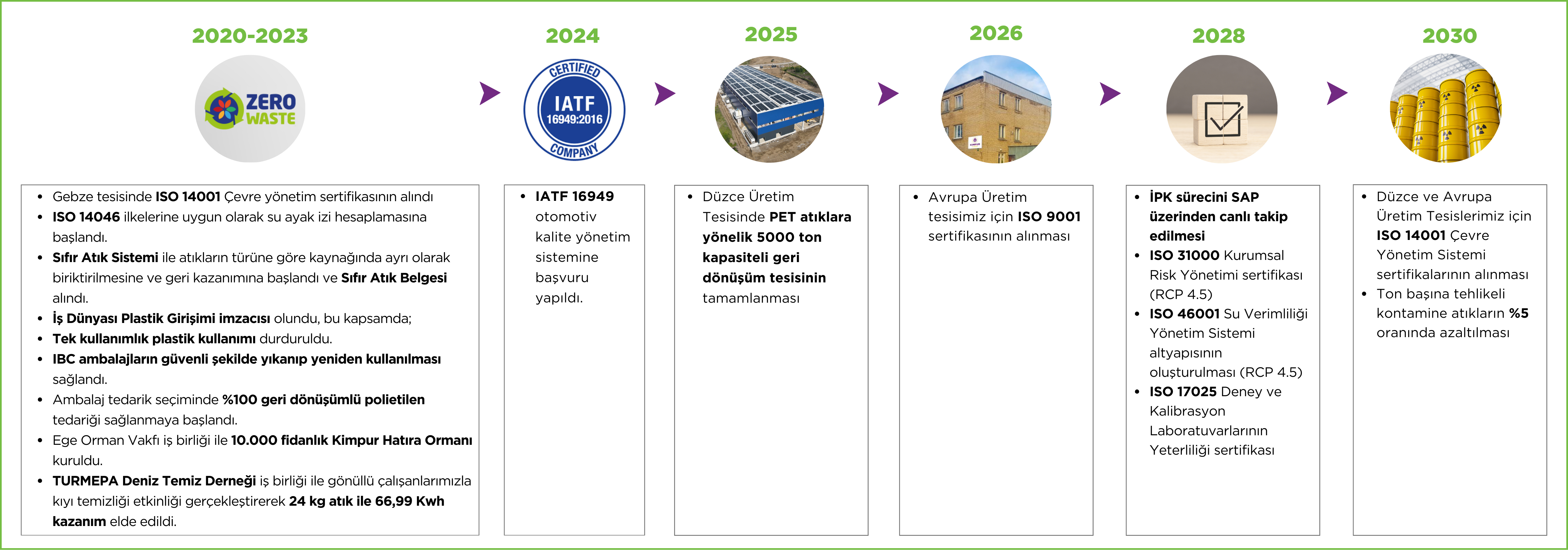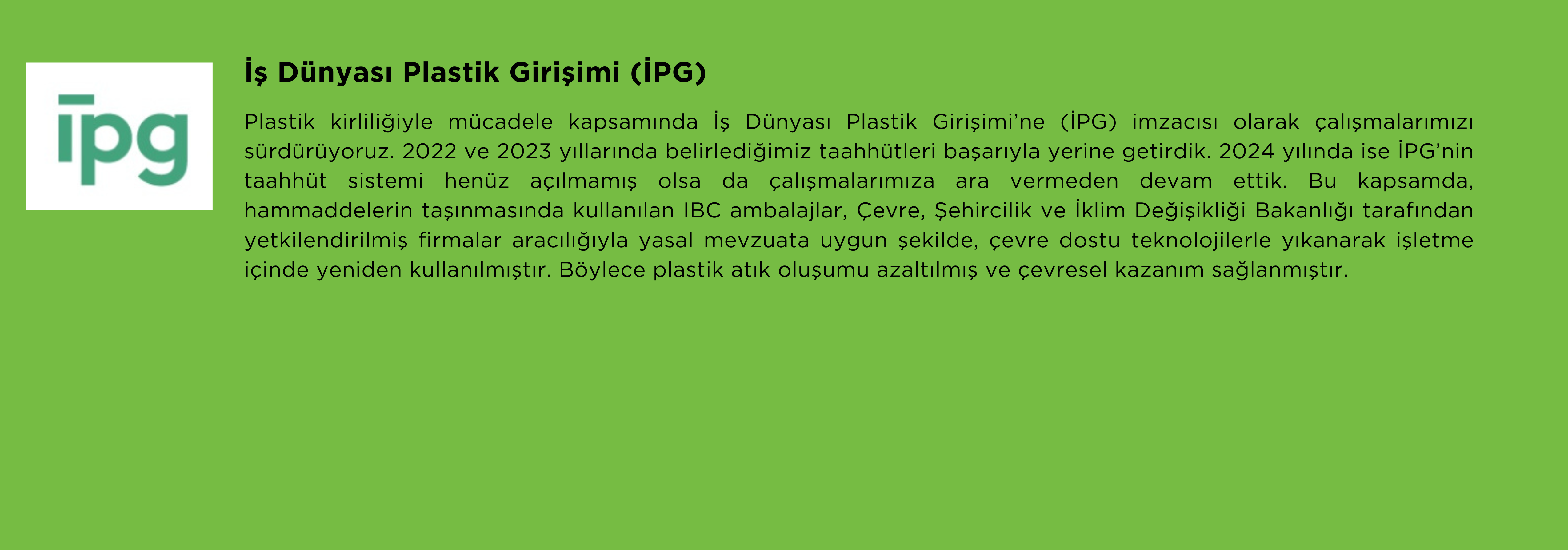 Atık yönetimimiz kapsamında; ISO 14001 standardına uygun bir yönetim modeli benimsiyoruz. Bu sistemi tasarlarken olumsuz çevresel etkiyi minimize etmeyi hedefliyor, bu doğrultuda hareket ediyoruz. Benimsediğimiz model ile üretim süreçlerimizi devamlı gözden geçiriyor, ham madde ve enerjinin verimli kullanımı için sürekli iyileştirme anlayışını uyguluyor, yenilikçi teknolojiler kullanıyor bu doğrultuda atıkların azaltılması için projeler geliştiriyoruz. Atıkların kaynağında azaltılması için çalışıyor ve geri dönüşüm veya yeniden kullanım için uygun olan ürünleri ayrıştırıyoruz.