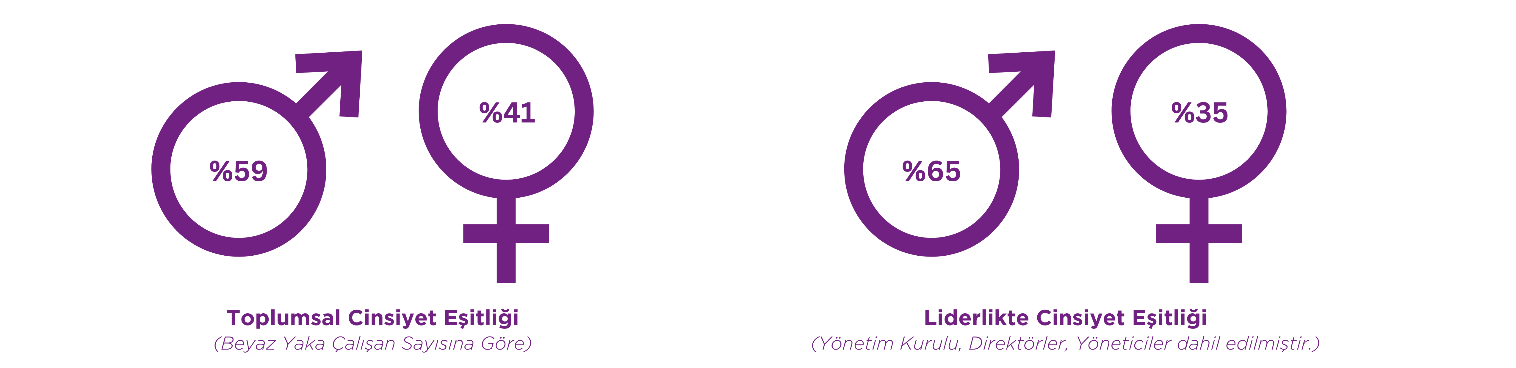 Beyaz yakada gücünün yaklaşık %39’unu kadınlardan alan bir firma olarak kadın bir CEO liderliğinde çalışmaktan gurur duyuyoruz. İşe alımdan emekliliğe kadar kadın ve erkeklere eşit haklar sağlayarak hem toplum içinde hem de profesyonel hayatta cinsiyet eşitliğini sağlamayı hedefliyoruz. Cinsiyet eşitliğini tüm çalışanlar arasında yaygınlaştırmak, farkındalığı artırmak, kadınları kariyerleri boyunca desteklemek, kadın istihdam oranını artırmak ve kadınların karar alma mekanizmalarındaki rolünü artırarak liderlikte cinsiyet eşitliğini sağlamak için ilerliyoruz.