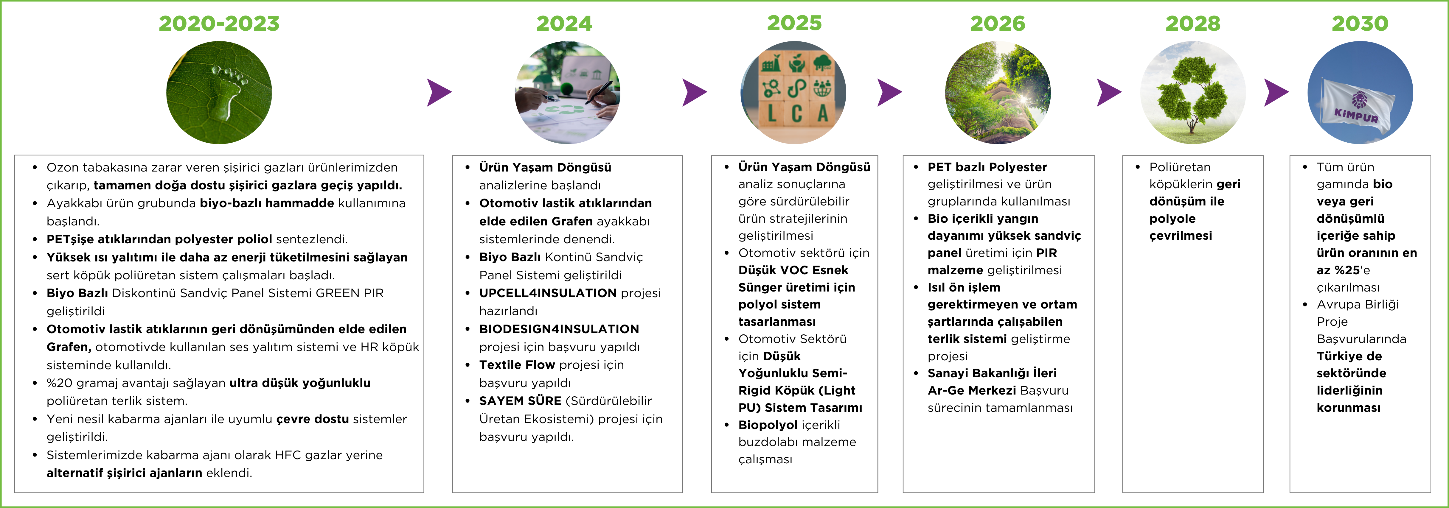 2024 yılı içinde, ürünlerimizin çevresel etkilerini ölçmek ve izlemek amacıyla üçüncü bir kuruluşla iş birliği yapılarak “Kimpur LCA Toolkit” adıyla kuruma özel bir Yaşam Döngüsü Analizi yazılımı geliştirilmiştir.